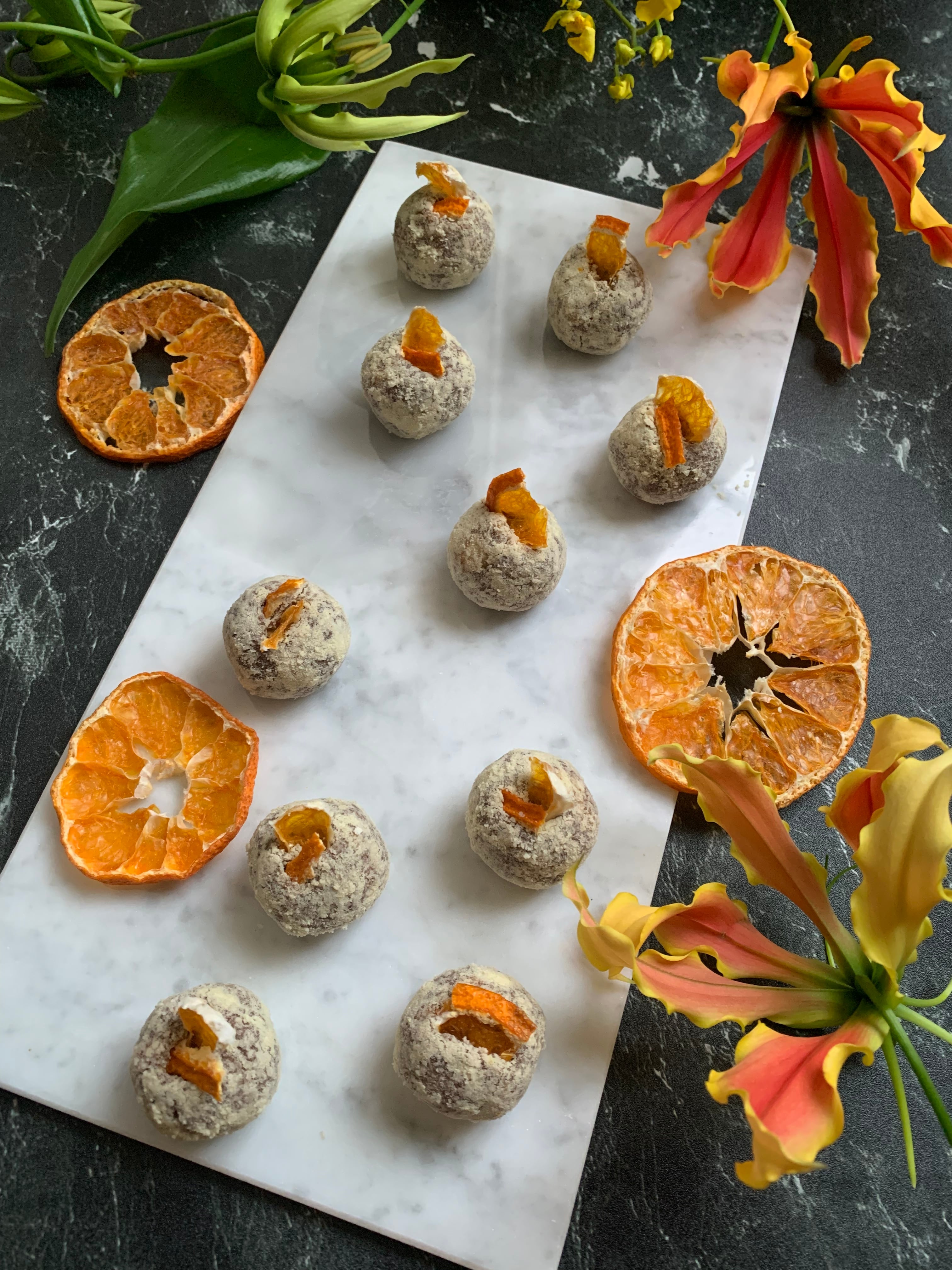 黄色系のフルーツとマタダミアナッツの組み合わせです。口に入れたら鼻からイランイラン吹き抜けます。。